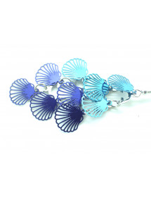 Inspired by the beauty of the seabed, these original earrings play with light through a subtle gradient of turquoise blue and purple. Each stylized shell is delicately cut from stainless steel, a material renowned for its strength and resistance to oxidation. The ensemble forms an airy, light, and fluid piece of jewelry, delicately swaying with every movement. The glossy finish reflects the nuances of the metal and accentuates the brilliance of the gradient. These earrings, 75 mm long with a 55 mm pendant, add a chic marine touch to any outfit, whether summery or dressy. Carefully crafted in our workshop in Anjou, they embody French artisanal know-how and attention to detail. A piece of jewelry that is both modern and poetic, perfect for illuminating the face while evoking the gentleness of the shores. Hypoallergenic stainless steel drop earrings. Stylized shell motifs, precision laser-cut. Metallic color gradients: turquoise blue, light blue, and purple. Dimensions: total height 75 mm – pendant 55 mm. Stainless steel hook clasps with silicone tips. Shiny finish, resistant to corrosion and tarnishing. French craftsmanship, carried out in our workshop in Anjou.