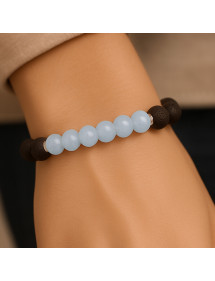 This bracelet is composed of 8 mm natural beads, alternating seven translucent blue quartz beads and black lava stone beads, separated by two stainless steel discs. With a total length of 19 cm, it is mounted on a high-strength elastic thread to guarantee comfort and durability. Blue quartz, a stone of serenity, contrasts elegantly with the porous and raw texture of the lava stone. Each bracelet is assembled by hand in our workshop in Anjou, using French artisanal know-how to ensure a neat and durable finish.