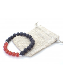 At 19 cm long, it is strung on a sturdy elastic cord for comfort and durability. Carnelian, a stone of vitality and confidence, offers warm, luminous reflections, while lava stone symbolizes power and stability.