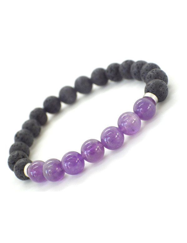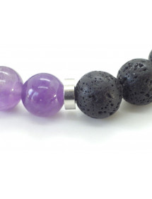 This bracelet combines the mineral strength of black lava stone with the vibrant softness of amethyst, creating an elegant and soothing contrast. The 8mm natural beads provide a perfect balance between presence and comfort, while the stainless steel spacers add a contemporary touch.