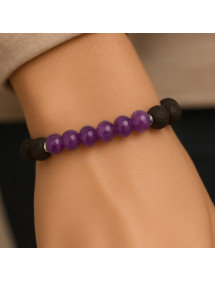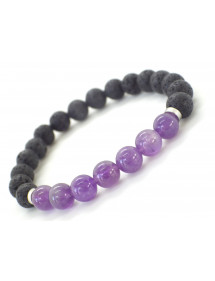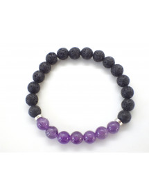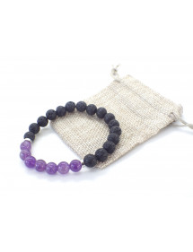 This bracelet is composed of 8 mm beads alternating seven purple amethyst beads and black lava stone beads. Two stainless steel discs serve as separators. Measuring 19 cm long, the whole is mounted on a high-strength elastic thread ensuring flexibility and durability. The raw texture of the lava highlights the translucent brilliance of the amethyst for a harmonious finish. Each piece is assembled by hand in our workshop in Anjou using French artisanal know-how, guaranteeing a neat and durable finish.