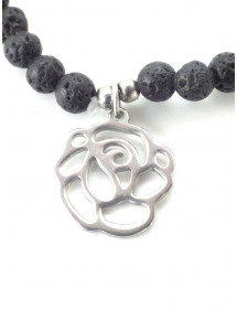 This fine lava stone bracelet captivates with its natural texture and matte sheen. The small 4 mm beads exude a raw and authentic charm, enhanced by a silver-tone stainless steel flower pendant that adds a touch of elegance. Its lightweight and balanced design makes it comfortable to wear all day long. At 19 cm long, it fits perfectly on most wrists. Handcrafted in our workshop in Anjou, this artisanal piece combines the mineral strength of lava with the finesse of metal for a chic and timeless style.