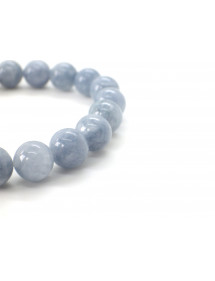 This bracelet is made of genuine 10mm natural blue quartz beads from Brazil, hand-strung on durable elastic cord, with a brass Buddha head in an antique bronze finish. Its 19cm length fits a standard women's wrist. Each piece is handcrafted in France, in our workshop in Anjou, with special attention paid to materials and finishes. This elegant and luminous piece of jewelry highlights the bluish softness of the natural stone.