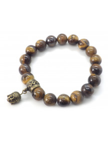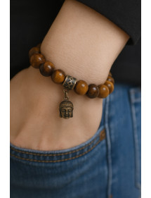 This bracelet is made of 10mm natural South African tiger's eye beads mounted on a 19cm elastic cord. The bail and Buddha head are made of brass with an antique bronze finish. The manufacturing is entirely handcrafted and carried out in our workshop in Anjou, France.