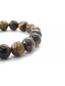 This bracelet is made of genuine 10mm natural South African tiger's eye beads hand-strung on durable elastic cord, with a brass Buddha head in an antique bronze finish. Its 19cm length fits a standard women's wrist. Each piece is handcrafted in France, in our workshop in Anjou, with special attention paid to materials and finishes. This piece of jewelry highlights the shimmering, golden reflections characteristic of this iconic natural stone.