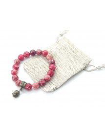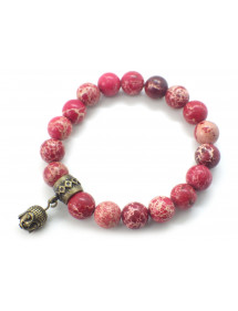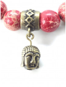 This bracelet is made of 10mm natural red imperial jasper beads from Indonesia mounted on a 19cm elastic cord. The bail and Buddha head are made of brass with an antique bronze finish. The manufacturing is entirely handcrafted and carried out in our workshop in Anjou, France.