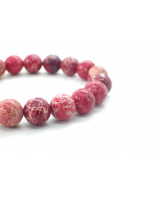 This bracelet is made of genuine 10mm natural red imperial jasper beads from Indonesia, hand-strung on durable elastic cord, with a brass Buddha head in an antique bronze finish. Its 19cm length fits a standard women's wrist. Each piece is handcrafted in France, in our workshop in Anjou, with special attention paid to materials and finishes. This piece of jewelry is distinguished by its earthy and elegant red hues, typical of imperial jasper.