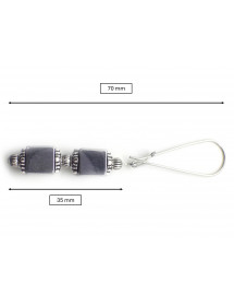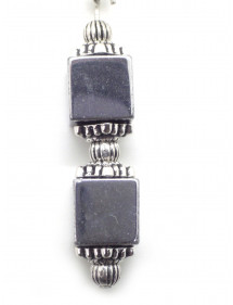 These handcrafted earrings combine two square chrome-plated hematite beads with delicate silver-plated brass cups, offering a refined contrast between metallic shine and textured relief. Their elongated design accentuates the posture, while the slender stainless steel hoops add lightness and elegance. At 70 mm in total length, they blend contemporary style with artisanal craftsmanship, making them ideal for enhancing a chic or casual outfit. Each pair is handmade in our workshop in Anjou, France. The earrings measure 70 mm in total length and 35 mm for the beaded section. They feature two square hematite beads in a chrome color, a natural stone from Brazil prized for its metallic luster and its grounding and protective energy properties. Finely chiseled, silver-plated brass bead caps harmoniously frame each bead. The elongated hoop-style posts are made of stainless steel, ensuring both comfort and durability. These earrings are entirely handcrafted in our workshop in Anjou, France.