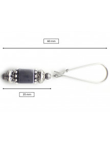 These chrome-plated hematite earrings are distinguished by their beautiful openwork silver-plated brass cups and elongated stainless steel hoops. Their design highlights the metallic luster of the hematite while offering a refined and timeless elegance. With a total length of 60 mm, they beautifully elongate the neckline and complement both classic and contemporary styles. Each piece is handcrafted in our workshop in Anjou, guaranteeing meticulous finishing and artisanal quality.