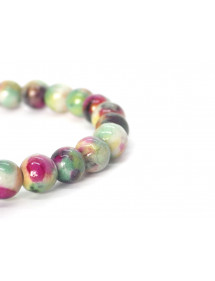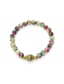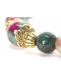 Beautiful Vintage bracelet in gold metal. Handcrafted, this bracelet is made with care and composed of White Jade tinted in green, red and brown (semi-precious stone) and gilded metal. Everything is mounted on a resistant and quality elastic thread. Style: Bohemia, Vintage Length: 19 cm Beads: White jade dyed green, red and brown (semi precious stone) Materials: White jade dyed green (semi precious stone) and gold metal Color: Green, red, brown Metal color : gold, golden