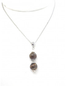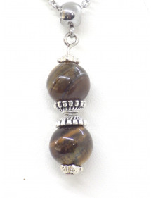 Magnificent artisanal creation presented by ThurColas Creation, it is a stainless steel necklace with a pendant made of natural brown Tiger's eye pearls (semi-precious stone) embellished with Tibetan pearls and silver metal cups. Style: Classic, chic, Ethnic, Bohemian Pendant height: 50 mm Necklace length: 45 cm Beads: 10 mm Materials: brown Tiger's eye (semi-precious stone), stainless steel, silver metal Color: brown Metal color: Silver, steel