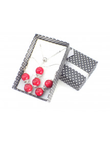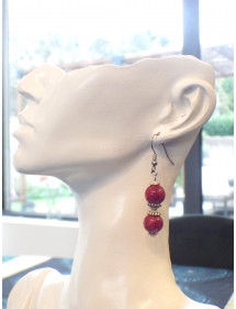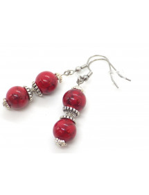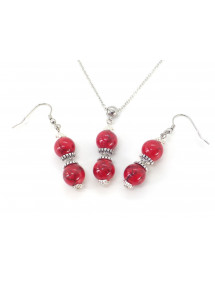 Magnificent artisanal creation presented by ThurColas Création, it is a set of jewelry composed of earrings and a necklace in stainless steel with pendants made of turquoise beads reconstituted with resin and tinted red, embellished Tibetan beads and silver metal cups. Style: Classic, chic, Ethnic, Bohemian Pendant height: 50 mm Necklace length: 45 cm Height Earrings: 50 mm Hooks: French Beads: 10 mm Materials: Red reconstituted turquoise, stainless steel, silver metal Color: red Color of metal: Silver, steel