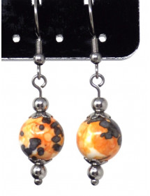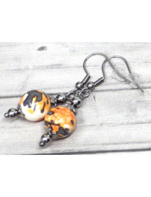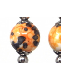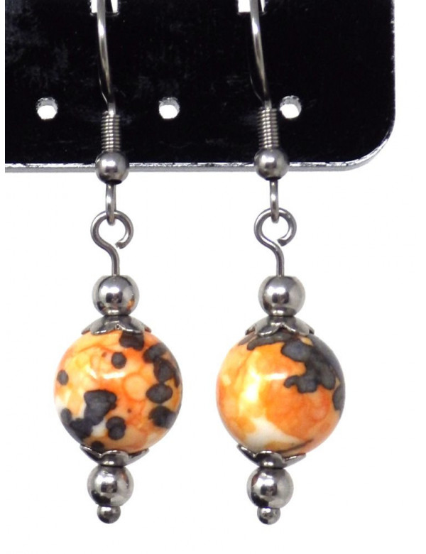 Made with passion in our workshops in France, these superb ThurColas earrings are composed of magnificent 10 mm beads in reconstituted jade tinted in orange and black. All of the metal parts of these earrings are made of stainless steel. - Style: Bohemian, Ethnic, Classic Chic - Crochet hook: French - Height: 40 mm - Beads: 10 mm - Materials: Tinted reconstituted white jade, stainless steel - Color: orange, black - Metal color: Antique silver, steel