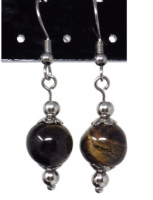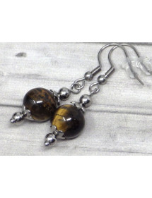 Made with passion in our workshops in France, these superb ThurColas earrings are composed of magnificent 10 mm Tiger Eye beads (semi precious stone). All of the metal parts of these earrings are made of stainless steel. - Style: Bohemian, Ethnic, Classic Chic - Crochet hook: French - Height: 40 mm - Beads: 10 mm - Materials: Tiger's Eye, stainless steel - Color: brown - Metal color: Antique silver, steel This jewel is made with Tiger Eye beads (semi precious stone), the Tiger Eye being a natural stone, there may be slight differences with the photograph. Everything is mounted on a nail and a stainless steel hook. This jewel comes with a superb gift pouch in golden textile.