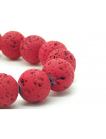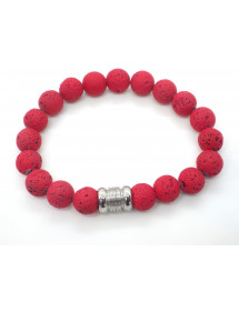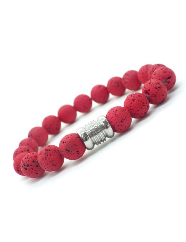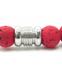 Ethnic men's bracelet in red lava stone beads and central stainless steel bead