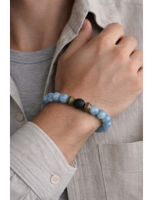 $22.75Very beautiful men's bracelet made with care in our workshops in France. This bracelet is made of beautiful natural blue quartz beads, black agate beads and very pretty Tibetan beads in golden brass. It is the strength of the metal that shines through in this model. Style: Ethnic, Bohemian, Tribal, Zen Length: 210 mm Beads: 10 mm and 12 mm Materials: Blue Quartz (Semi-Precious Stone), Black Agate Brass Color: Blue, Black Metal Color: Gold