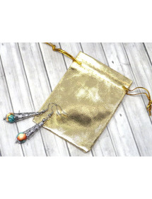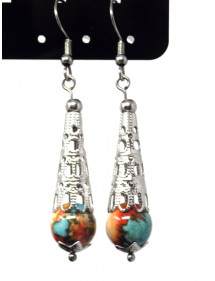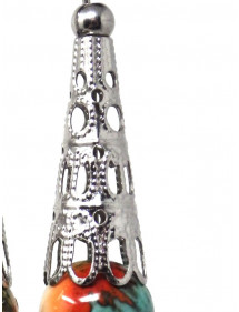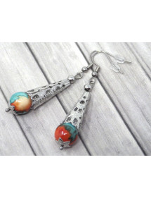 Made with passion in our workshops in France, these stunning ThurColas earrings feature a filigree stainless steel cone and beautiful 10mm reconstituted jade beads tinted in brown, orange and blue. All of the metal parts of these earrings are made of stainless steel. - Style: Bohemian, Ethnic, Classic Chic - Crochet hook: French - Height: 55 mm - Beads: 10 mm - Materials: Tinted reconstituted white jade, stainless steel - Color: Blue, brown, orange - Metal color: Antique silver, steel This jewel is made with reconstituted jade beads, the dyeing process being random, there may be slight differences with the photograph. Everything is mounted on a nail and a stainless steel hook. This jewel comes with a superb gift pouch in golden textile.