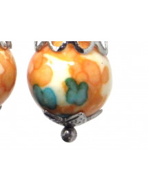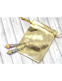 Passionately crafted in our workshops in France, these stunning ThurColas earrings feature a filigree stainless steel cone and beautiful 10mm reconstituted jade beads tinted orange and blue. All of the metal parts of these earrings are made of stainless steel. - Style: Bohemian, Ethnic, Classic Chic - Crochet hook: French - Height: 55 mm - Beads: 10 mm - Materials: Tinted reconstituted white jade, stainless steel - Color: orange, blue - Metal color: Antique silver, steel This jewel is made with reconstituted jade beads, the dyeing process being random, there may be slight differences with the photograph. Everything is mounted on a nail and a stainless steel hook. This jewel comes with a superb gift pouch in golden textile.