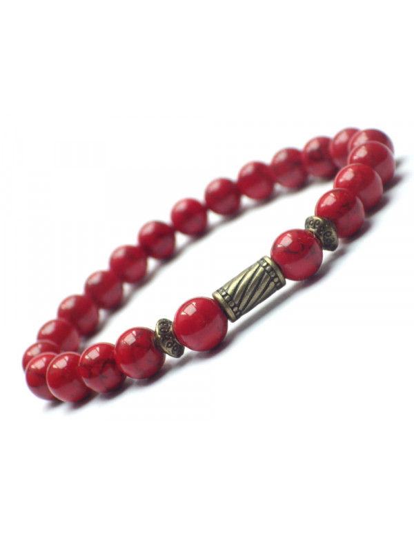 Ethnic Zen Thurcolas bracelet for women with reconstituted red Turquoise beads and Tibetan bronze beads