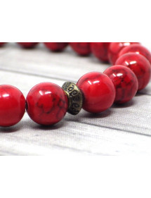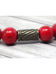 Magnificent Zen model bracelet. Carefully crafted in our workshops in France, this bracelet from the Zen range is made up of magnificent reconstituted red Turquoise beads and very pretty Tibetan bronze beads. It is the serenity of Buddhism that shines through in this Zen model. Style: Ethnic, Bohemian Length: 190 mm Beads: 8 mm Materials: Red reconstituted turquoise, bronze, brass Color: Red Metal color: bronze