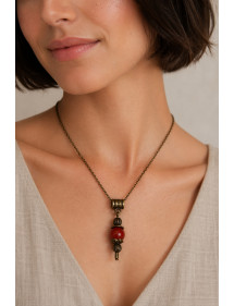 $15.75Magnificent Vintage necklace in antique bronze. Handcrafted, this necklace with pendant is made with care and composed of red carnelian (semi precious stone) and antique bronze. Everything is mounted on an antique bronze chain. Style: Bohemia, Vintage Clasp: lobster claw Pendant height: 30 mm Chain length: 43 cm Beads: red carnelian (semi precious stone) Materials: antique bronze Color: red Metal color: Antique bronze -