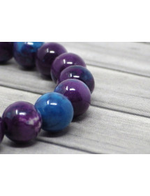 Superb tribal bracelet. Made with care in our workshops in France, this bracelet from the Zen range is composed of beautiful purple and blue reconstituted jade beads and very pretty Tibetan silver plated metal beads. It is the serenity of Buddhism that is reflected in this Zen model. Style: Ethnic, Bohemia Length: 190 mm Beads: 8 mm Materials: reconstituted jade, silver plated metal Color: purple, blue Metal color: Antique Silver This jewel is made with reconstituted jade beads, the dyeing process being random, there may be slight differences with the photograph. the set is decorated with Tibetan beads silver plated metal. The whole is mounted on an elastic crystal wire. This jewel comes with a beautiful gift pouch in golden textile.