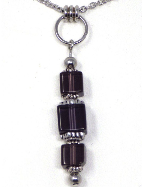 Magnificent purple stainless steel necklace in classic style for elegant women. This precious jewel is made with square purple glass beads. The chain, the clasp and all the metal parts are made of stainless steel with the exception of the nail and the pendant cups which are made of silver plated brass. The dominant color of the pendant is purple. The glass beads are 6 and 8 mm. The length of the necklace is 46 cm. Thurcolas is a French creation workshop specializing in the artisanal manufacture of jewelry. All our jewelry, bracelets, earrings, necklaces and ankle chain are handmade in France with quality materials.