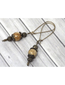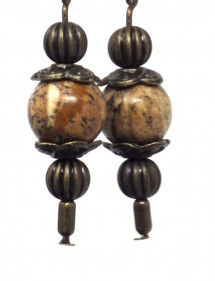 Vintage-style Thurcolas earrings in brown jasper mounted on fancy antique bronze hoops