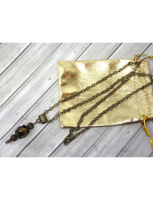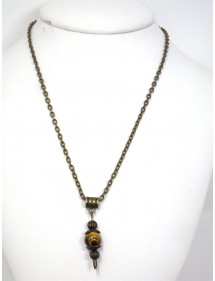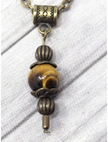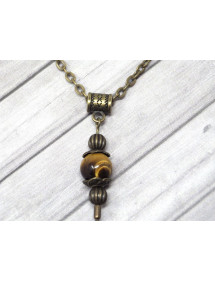 Magnificent Vintage necklace in antique bronze. Handcrafted, this necklace with pendant is made with care and composed of brown tiger eye (semi precious stone) and antique bronze. Everything is mounted on an antique bronze chain. Style: Bohemia, Vintage Clasp: lobster claw Pendant height: 30 mm Chain length: 43 cm Beads: brown tiger eye (semi precious stone) Materials: antique bronze Color: brown Metal color: Antique Bronze Our beads are in real tiger eye and assembled on a bronze rod, the tiger eye being a natural stone, each bead is unique in color so there may be slight differences with the model presented, each model is made unique. This jewel comes with a free gold-colored gift pouch.
