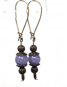 Magnificent Vintage bracelet and earrings set in antique bronze. Handcrafted, this set of jewelry consisting of a bracelet and creole earrings is made with care and composed of blue quatz (semi precious stone) and antique bronze. Everything is mounted on a quality resistant elastic and fancy antique bronze hoops. Style: Bohemia, Vintage hook earrings: hoop Earring height: 60 mm Bracelet length: 19 cm Beads: blue quartz (semi precious stone) Materials: antique bronze Color: Blue Metal color: Antique bronze