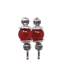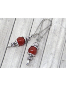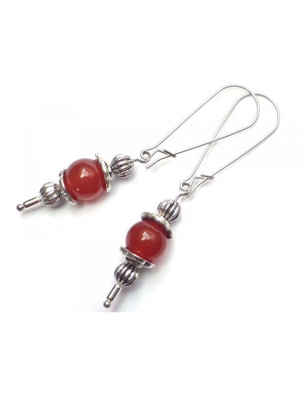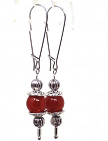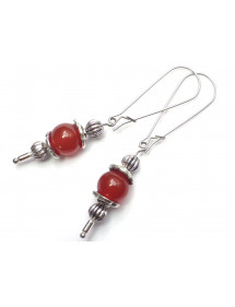 Beautiful Vintage stainless steel earrings. Handcrafted, these earrings are made with care and composed of red carnelian (semi precious stone), silver metal and stainless steel. Everything is mounted on fancy stainless steel hoops. Style: Bohemia, Vintage Hook: Dormeuse, hoops Height: 60 mm Beads: red carnelian (semi precious stone) Materials: silver metal and stainless steel Color: red Metal color: steel, silver Our beads are made of genuine red carnelian and assembled on a stainless steel rod, carnelian being a natural stone, each bead is unique in color so there may be slight differences with the model presented, each model is in fact unique. This jewel comes with a free gold-colored gift pouch.