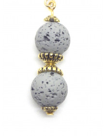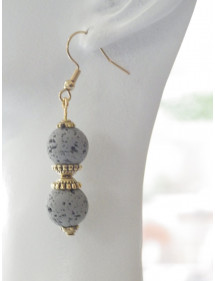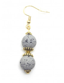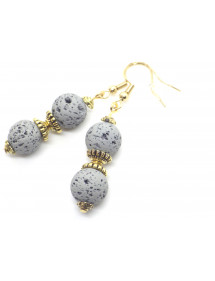 Orecchini con perle di pietra lavica grigia e perle tibetane dorate