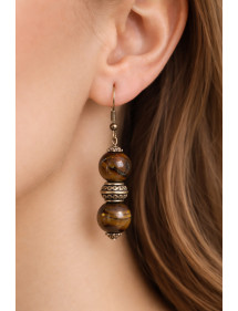 Magnifica creazione artigianale presentata da ThurColas Creation, si tratta di orecchini realizzati con perle naturali in Ematite nera e cromo (pietra semipreziosa) impreziositi da perle tibetane e coppe in metallo dorato. Il tutto è montato su ganci francesi in acciaio inox placcato oro. Stile: Classico, chic, etnico, bohémien Gancio: Francese Altezza: 50 mm Perline: 10 mm Materiali: Ematite nera e cromo (pietra semipreziosa), acciaio inossidabile, metallo dorato Colore: nero Colore del metallo: oro