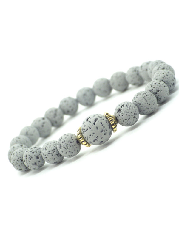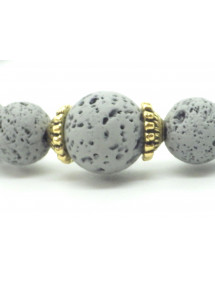 Magnifica creazione artigianale presentata da ThurColas Creation, si tratta di un braccialetto da donna realizzato con perle di pietra lavica naturale grigia (pietra semipreziosa) decorato con coppe in metallo dorato. Il tutto è montato su un filo elastico di qualità. Stile: Classico, chic, Etnico, Bohémien Lunghezza: 19 cm Perline: 10 mm Materiali: pietra lavica grigia (pietra semipreziosa), metallo dorato Colore: grigio Colore metallo: Oro Le nostre perle sono realizzate in vera pietra lavica grigia e assemblate su un filo elastico di qualità molto resistente, essendo la pietra lavica una pietra naturale, ogni perla è unica nel colore quindi potrebbero esserci leggere differenze con il modello presentato, ogni modello è infatti unico. Questo gioiello viene fornito con un sacchetto regalo.