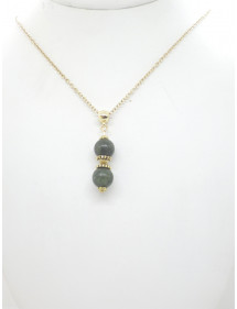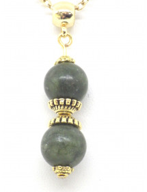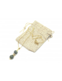 Magnifica creazione artigianale presentata da ThurColas Creation, si tratta di una collana in acciaio inossidabile con pendente realizzato con perle naturali di giada verde di Taiwan (pietra semipreziosa) impreziosita da perline tibetane e coppe in metallo dorato. Stile: classico, chic, etnico, bohémien Altezza pendente: 50 mm Lunghezza collana: 45 cm Perline: 10 mm Materiali: giada verde di Taiwan (pietra semipreziosa), acciaio inossidabile, metallo dorato Colore: verde Colore metallo: Dorato, oro Le nostre perle utilizzate per il pendente di questa collana sono realizzate in vera giada verde di Taiwan e assemblate su un'asta di metallo dorato, il tutto è montato su una catena in acciaio inossidabile placcato oro, essendo la giada una pietra naturale, ogni perla è unica nel colore e potrebbe pertanto potrebbero esserci lievi differenze con il modello presentato, ogni modello è quindi unico. Questo gioiello viene fornito con un sacchetto regalo gratuito.