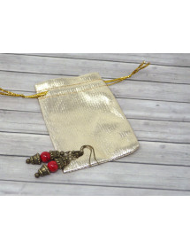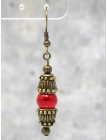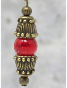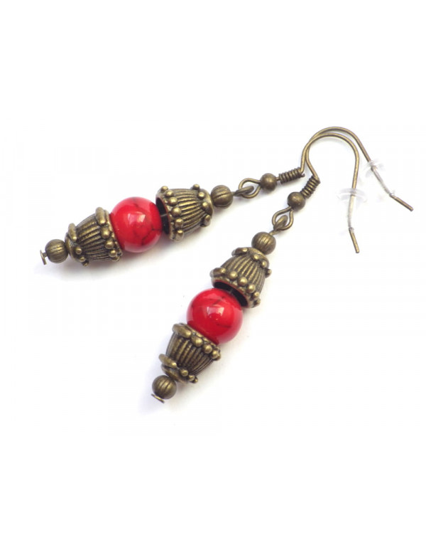 Superbes boucles d'oreilles pendantes Hippie Chic fabriquées artisanalement en France avec des perles rouges en turquoise reconstituée, et avec des perles tibétaines en bronze. L'ensemble est très chic, vous allez les adorer. Le tout est monté sur des crochets French en bronze. Style : Bohême, boho, gypsy, tribal, ethnique, Zen Crochet : French en bronze Hauteur : 48 mm Perles : turquoise reconstituée (8 mm), perles tibétaines en bronze Matériaux : Turquoise reconstituée, bronze, laiton Couleur : Rouge Couleur du métal : Bronze Ces magnifiques boucles d'oreille sont constituées de perles en turquoise rouge reconstituée et de perles tibétaines en bronze. Le tout est monté sur une tige et des crochets French en bronze. Ce bijou est livré avec une pochette cadeau de couleur dorée.