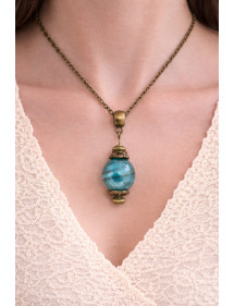 Questa elegante collana artigianale aggiungerà un tocco di raffinatezza al tuo outfit. Il suo stile vintage, valorizzato da una perla in vetro smaltato e perlescente turchese che circonda una foglia d'argento, la rende ideale per un'occasione speciale o per aggiungere un tocco chic alla tua quotidianità. Questa collana e la sua chiusura sono in ottone, abbinate a perle e aste in ottone color bronzo antico, per un design armonioso e senza tempo. Perfettamente bilanciata con una catena di 45 cm e un pendente di 35 mm, questi orecchini leggeri e confortevoli sono progettati per essere sia eleganti che facili da indossare.