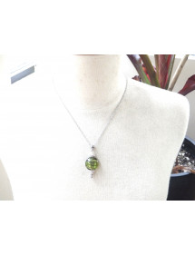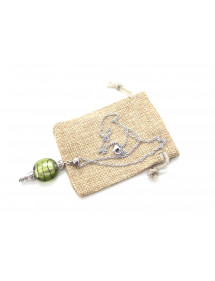 Questa elegante collana artigianale aggiungerà un tocco di raffinatezza al tuo outfit. Il suo stile vintage, sublimato da una perla in vetro lampwork verde chiaro che avvolge una foglia d'argento, la rende ideale per un'occasione speciale o per aggiungere una nota chic alla tua quotidianità. Questa collana e la sua chiusura sono in acciaio inossidabile, abbinate a perline e steli in ottone argentato, per un design armonioso e senza tempo. Perfettamente bilanciata con una catena di 45 cm e un pendente di 40 mm, questi orecchini leggeri e confortevoli sono pensati per essere sia eleganti che facili da indossare.