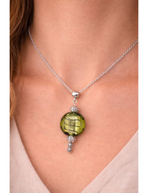 Questa elegante collana artigianale aggiungerà un tocco di raffinatezza al tuo outfit. Il suo stile vintage, sublimato da una perla in vetro lampwork verde chiaro che avvolge una foglia d'argento, la rende ideale per un'occasione speciale o per aggiungere una nota chic alla tua quotidianità. Questa collana e la sua chiusura sono in acciaio inossidabile, abbinate a perline e steli in ottone argentato, per un design armonioso e senza tempo. Perfettamente bilanciata con una catena di 45 cm e un pendente di 40 mm, questi orecchini leggeri e confortevoli sono pensati per essere sia eleganti che facili da indossare.