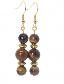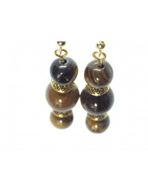Orecchini pendenti Thurcolas in stile classico e chic in occhio di tigre marrone e acciaio inossidabile dorato