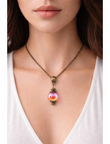 Questa elegante collana artigianale aggiungerà un tocco di raffinatezza al tuo outfit. Il suo stile vintage, arricchito da una perla acrilica iridescente rosso-arancione, la rende ideale per un'occasione speciale o per aggiungere un tocco chic alla tua quotidianità. Questa collana e la sua chiusura sono in ottone, abbinati a perline e steli in bronzo antico, per un design armonioso e senza tempo. Perfettamente bilanciata con una catena di 45 cm e un pendente di 35 mm, questi orecchini leggeri e comodi sono pensati per essere sia eleganti che facili da indossare.
