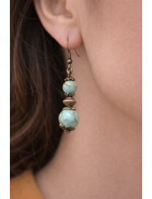 Orecchini in perle di turchese ricostituite tinte blu e perle in bronzo antico