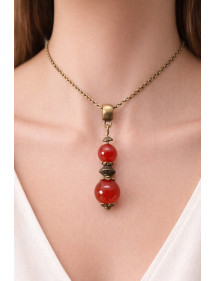 Una bellissima creazione artigianale presentata da ThurColas Création, è una collana in ottone bronzo antico con un pendente in perle di corniola rossa naturale (pietra semipreziosa) impreziosite da perline tibetane e coppe in bronzo antico. Il suo stile vintage, impreziosito da bellissime perle, lo rende ideale per un'occasione speciale o per portare una nota chic al tuo outfit quotidiano. Questa collana e la chiusura sono realizzate in ottone bronzo antico, abbinate a perline e perni in ottone, per un design armonioso e senza tempo. Perfettamente bilanciato con una catena da 45 cm e un ciondolo da 35 mm. Stile: Classico, chic, etnico, bohémien Altezza ciondolo: 35 mm Lunghezza collana: 45 cm Perline: 10 mm e 8 mm Materiali: Corniola rossa (pietra semi preziosa), ottone, bronzo antico Colore: rosso Colore del metallo: Bronzo antico