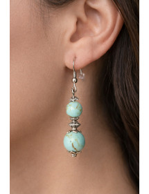 Una bella creazione artigianale presentata da ThurColas Création, si tratta di orecchini in acciaio inossidabile realizzati con perline turchesi ricostituite con resina e tinte di blu, impreziosite da perline tibetane e perline in ottone argentato. Il tutto è montato su ganci francesi in acciaio inossidabile. Perfettamente bilanciati con un'altezza totale di 50 mm e un pendente di 35 mm, questi orecchini leggeri e confortevoli sono progettati per essere eleganti e facili da indossare. Stile: Classico, Chic, Etnico, Bohémien Gancio: Francese Altezza: 50 mm Perline: 10 mm e 8 mm Materiali: Turchese riposizionato blu, ottone, acciaio inossidabile Colore: blu Colore del metallo: acciaio, argento
