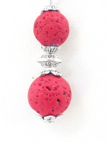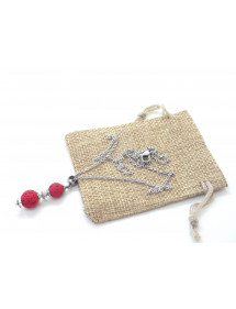 Collana da donna in acciaio inox con pendente in pietra lavica rossa e ottone argentato