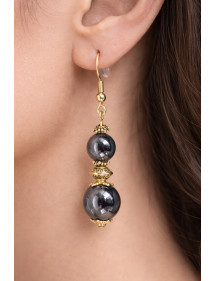 Stile: Classico, chic, etnico, bohémien Gancio: francese Altezza: 50 mm Perline: 10 mm e 8 mm Materiali: Ematite nera (pietra semi preziosa), ottone, acciaio inossidabile Colore: nero Colore del metallo: oro, oro