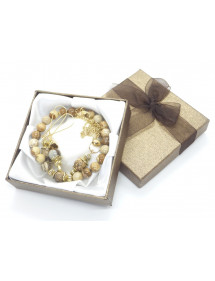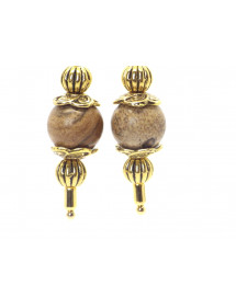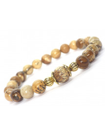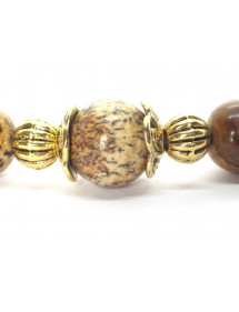 Parure di gioielli da donna con bracciale, collana e orecchini in stile vintage in diaspro marrone e metallo dorato