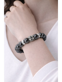 Magnifica creazione artigianale presentata da ThurColas Création, si tratta di un bracciale da donna realizzato in perle di ematite nera naturale (pietra semipreziosa) impreziosite da una perla centrale con cristalli. Il tutto è montato su un filo elastico di qualità. Stile: Classico, Chic, Etnico, Bohémien Lunghezza: 19 cm Perline: 10 mm Materiali: Ematite nera (pietra semi preziosa), Metallo argentato, Cristallo Colore: Nero Colore metallo: Argento Le nostre perline sono realizzate in vera ematite nera e assemblate su un filo elastico di qualità molto resistente, essendo la giada una pietra naturale, ogni perla è unica nel colore quindi potrebbero esserci lievi differenze con il modello presentato, ogni modello è infatti unico. Questo gioiello viene fornito con un sacchetto regalo.