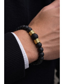 Bellissimo bracciale da uomo realizzato con cura nei nostri laboratori in Francia. Questo braccialetto è composto da bellissime perle di agata nera smerigliata naturale, perline di agata nera e graziose perline tibetane in ottone dorato. È la forza del metallo che risplende in questo modello. Stile: etnico, bohémien, tribale, zen Lunghezza: 210 mm Perline: 10 mm e 12 mm Materiali: agata nera smerigliata (pietra semipreziosa), agata nera in ottone Colore: nero Colore del metallo: oro