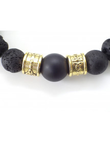 Bellissimo bracciale da uomo realizzato con cura nei nostri laboratori in Francia. Questo braccialetto è composto da bellissime perle di pietra lavica nera naturale, perline di agata nera e graziose perline tibetane in ottone dorato. È la forza del metallo che risplende in questo modello. Stile: Etnico, Bohémien, Tribale, Zen Lunghezza: 210 mm Perline: 10 mm e 12 mm Materiali: Pietra lavica (pietra semipreziosa), agata nera Ottone Colore: Nero Colore del metallo: Dorato
